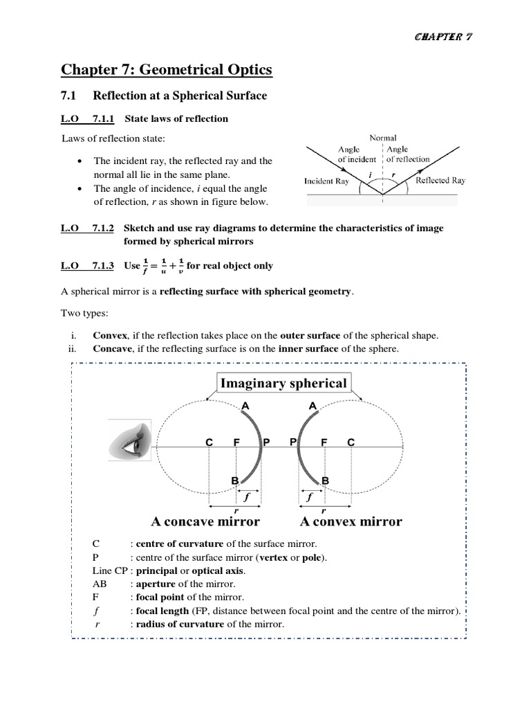 Optical Properties of Spherical Mirrors Focal Lengths, Ray Diagrams
